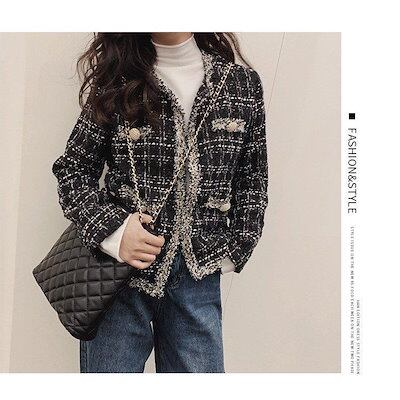 コート ツイードコート レディース ツイードコート ラメいりツイードジャケット チェック柄スーツコートオシャレ 結婚式 パーティー