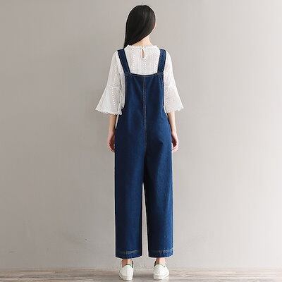 2024 文芸的 レトロ 九分丈パンツ ゆったり ワイドパンツ デニム オーバーオール サ ロペット ストレートパンツ 涼しい ジーンズ