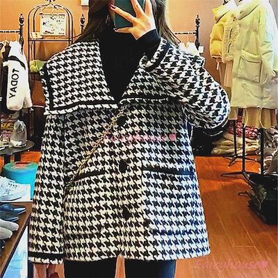 ラシャコート コート ジャケット レデイース 秋冬 40代 オシャレ 韓国風 チェック 長袖コート