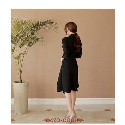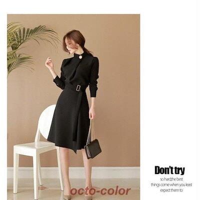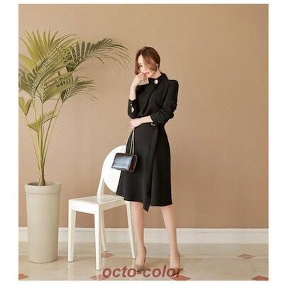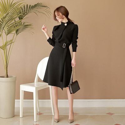 人気沸騰新柄追加 膝丈ワンピース Aライン セレモニースーツ レディース ママ 母親 フォーマル 入学式ワンピース スリム シンプル 黒 入園式 長袖 上品 気質