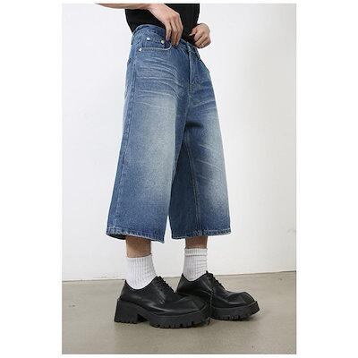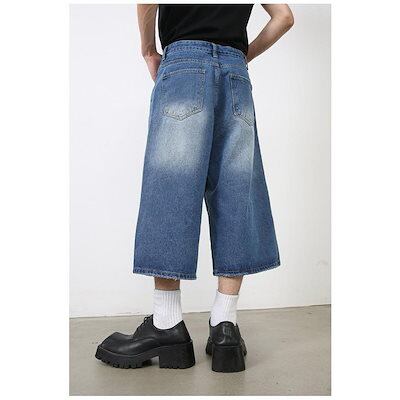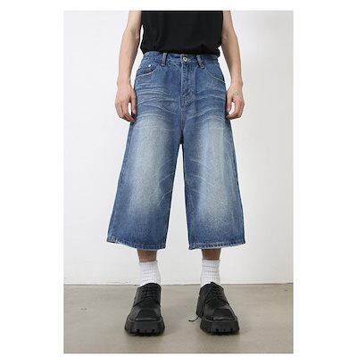 大きめ ワイドパンツ ゆったり 太め アンクルパンツ ブランド デニムパンツ ジーンズ レディース デニム gパン メンズ ボトムス ストレート 7分丈 ジーパン