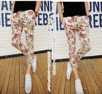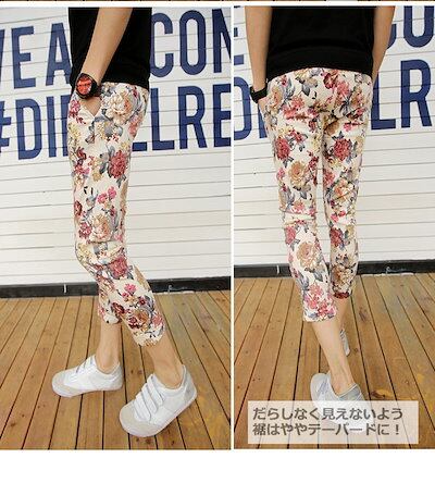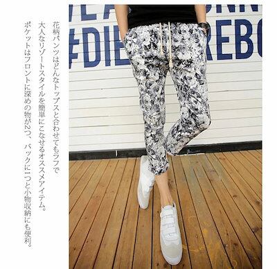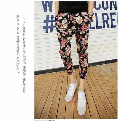 【急速出荷】花柄パンツ 花柄ロングパンツ クロップドパンツ クロップド フラワー アンクルパンツ テーパードパンツ アンクル 柄パンツ 七分丈 7分丈 9分丈 メンズ ファッション 夏 ボトムス パン
