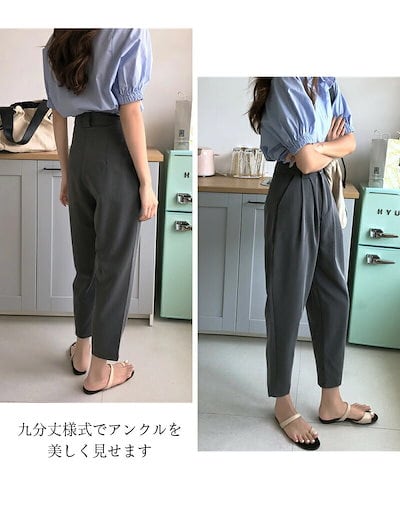 【スラックス レディース】 ロング丈 九分丈 アンクル丈 九分丈パンツ ロングパンツ はっきり ハイウェスト 無地 脚長 美脚 春 夏 秋 大人 定番 シンプル 普段着 エレガント 高級 上品 通勤