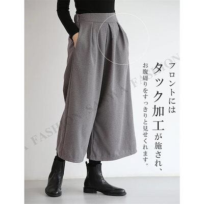 [QINGCE]タック入りワイドパンツ レディース ゆったり 体型カバー ボトム ワイドパンツ アンクル丈 大きいサイズ