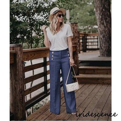 【迅速な出荷】ワイドパンツ レディース きれいめ 春 9分丈 アンクルパンツ ハイウエスト フロントボタン ガウチョパンツ カジュアル ボトムス2(個)ごとに11 O円き