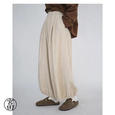 バルーンパンツ パンツ レディース サルエルパンツ ロング丈パンツ ワイドパンツ コーデュロイ アンクルパンツ ポケット付き ワイドパンツ ボリェーム感 ワ
