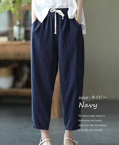 体型カバー 綿麻調 通気性 イージーパンツ ボトムス ウェスト総ゴム 着やすい テーパード テーパードパンツ アンクルパンツ カジュアル レディース 九分丈 シンプル 調整可 紐付き ゆるめ 9分丈