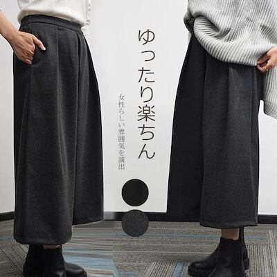 ワイドパンツ レディース ワイドパンツ 冬 ラシャ パンツ 秋冬 暖かい ボリューム ゆったり 体型カバー アンクルパンツ 九分丈 大きいサイズ ガウチョパンツ きれいめ スカンツ キュロット 防寒3