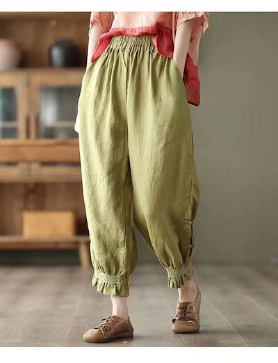 バルーンパンツ 綿麻パンツ ゆったり パンツ 綿麻 風 無地 ゆったり ポケット付き 大きいサイズ レディース 麻 ワイドパンツ カジュアル ゆったり 無地 サルエルパンツ 9分丈 コットンリ