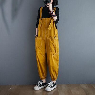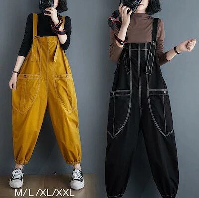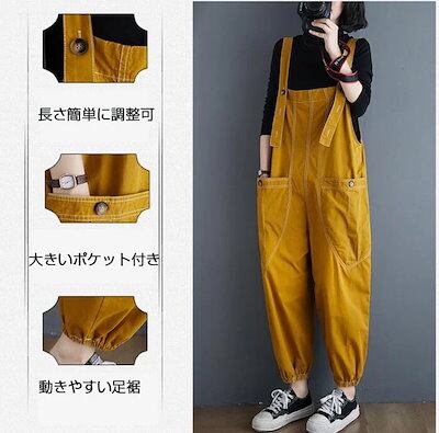 大人可愛いサロペット サロペットデニム風 サロペットオールインワンサロペットサルエルパンツデニムレディースオーバーオールワイドロングゆったりカジュアル大人パンツサロペット可愛いきれいめ カジュアル34
