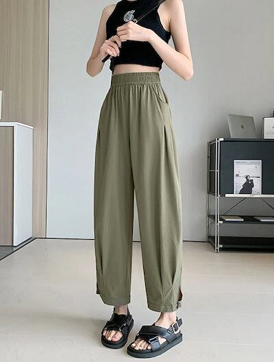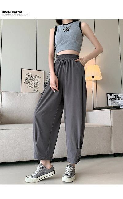 サルエルパンツ ワイドパンツ パンツ レディース 夏 ボトムス ズボン ゆったり ワイド 無地 ロングパンツ 夏物 ガウチョパンツ ハロンパンツ タック入り 9分丈 ウエストゴム 大きいサイ