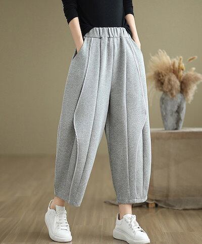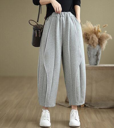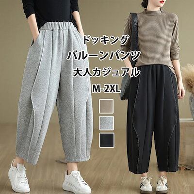 バルーンパンツ スウェット レディース パンツ サルエルパンツ ウエストゴム 無地 ドッキング 切替パンツ ポケット付き ロングパンツ ゆったり ボトムス ズボン カジュアルパンツ 体型カバー 美脚