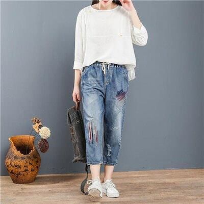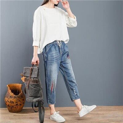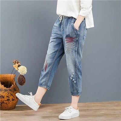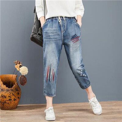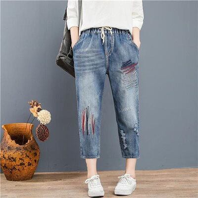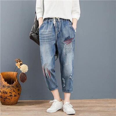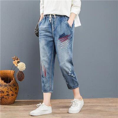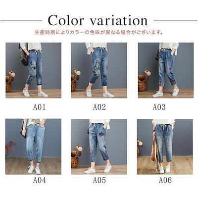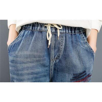 今月限りのお得なスサルエルパンツ デニムパンツ レディース 刺繍 8分丈 Gパン 大きいサイズ ゆったり カジュアル ガウチョ ワイド おしゃれ 体型カバー