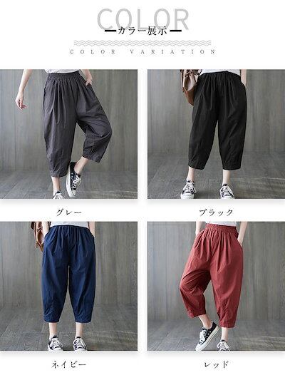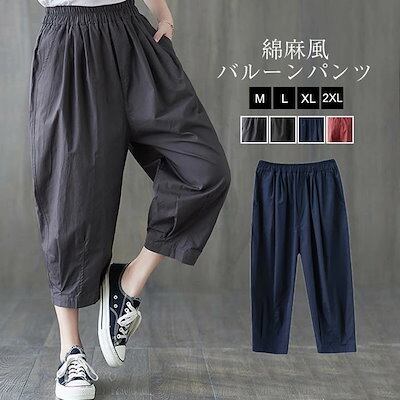 【即納】バルーンパンツ テーパードパンツ サルエルパンツ レディース パンツ ボトムス 綿混 ワイドパンツ 7分丈 無地 夏服 春夏 ロング丈 美脚 丸み おしゃれ 着やせ リラックス ゆったり ウエ