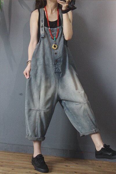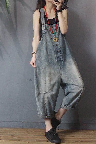 【急速出荷!】オーバーオール デニム オールインワン 九分丈 サルエルパンツ デニムオーバーオールレディース ゆったりパンツ 春秋レディース アラジンパンツ おしゃれ サロペット ゆったり 楽ちん 無