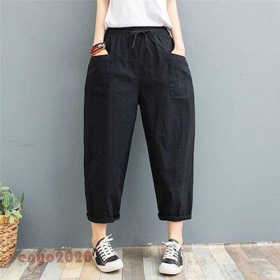 [最安値挑戦]!!パンツ ボトムス ワイドパンツ サルエルパンツ テーパードパンツ 綿麻 レディース カジュアル 無地 綿 麻 ポケット付き ゆったり リネン 大きいサイズ 夏
