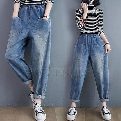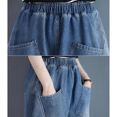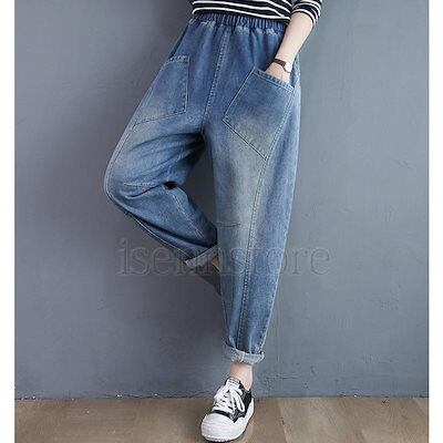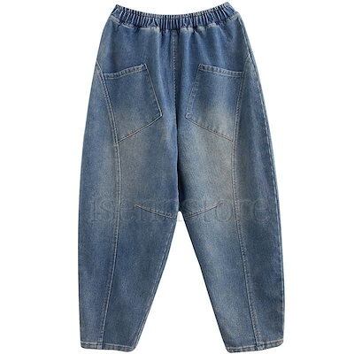 サルエルパンツ デニムパンツ ゆる ジーンズ 春夏 9分丈 レディース ボトムス ウエストゴム テーパードパンツ 女性用 大きいサイズ Gパン ヴィンテージ おしゃれ