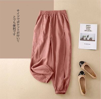 ワイドパンツ ガウチョパンツ パンツ レディース 夏 ワイド イージーパンツ 綿麻風 9分丈 バルーンパンツ ボトムス ウェストゴム サルエルパンツ タック入り ゴム 無地 薄手 大きいサイズ 体型カ