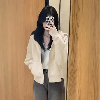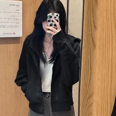 ショートフード付きトレーナージャケット春レディース2025韓国スタイルゆったりと多用途カジュアルジッパーカーディガン