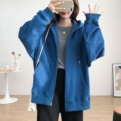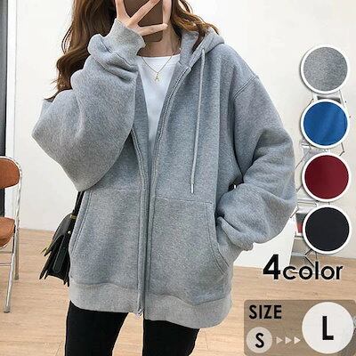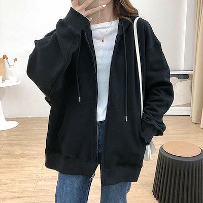 パーカー レディース スウェット トップス コート 羽織 大人カジュアル 大きめ フードあり ジップアップ 大きめ ビックシルエット オーバーサイズ ジップアップパーカー 大きいサイズ グレー ブラッ