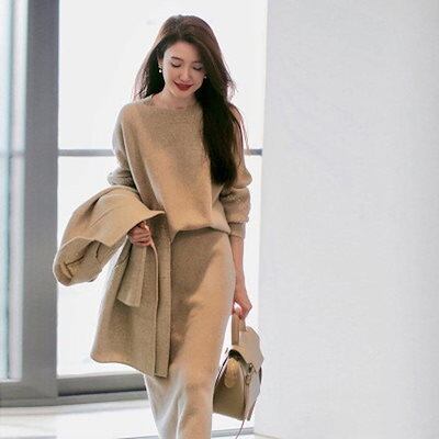 秋冬 おしゃれ 気質 レディースセットアップ ニット アウター 二点セット 上下セット セーター ニットスカート セットアップ