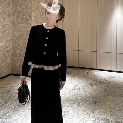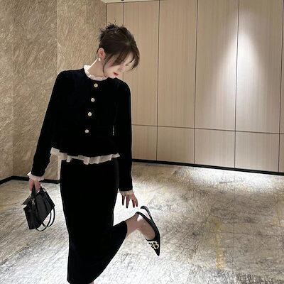 冬アウター 涼しく楽ちんセットアップ2025秋の新型レースの偽の2つの気質のワンピースは腰を伸ばしてつなぎ合わせます韓国ファッション