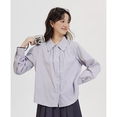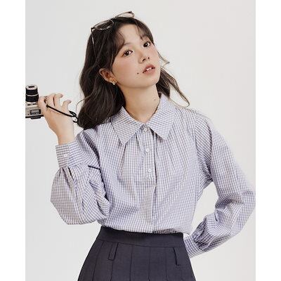 【会員専用 8% off】ボタンヘッダー POLOネック チェック 長袖 重ね着 シャツ レディース 開襟シャツ 上着