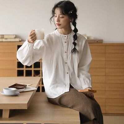 【会員専用 8% off】ボタンプリーツ 長袖 クルーネック重ね着 シャツ レディース 開襟シャツ 上着