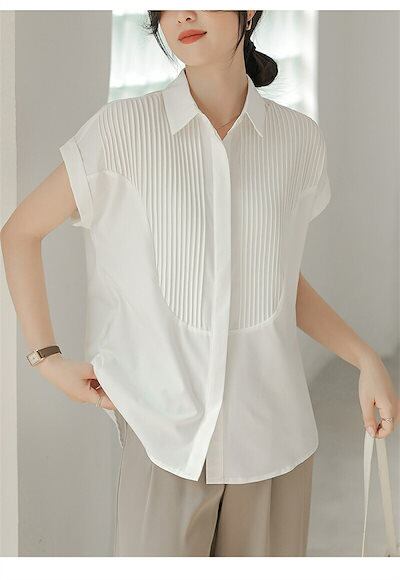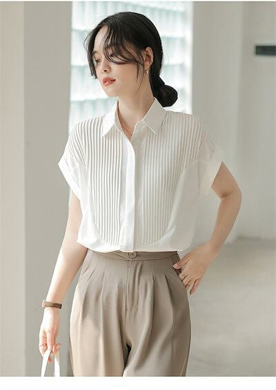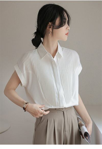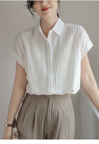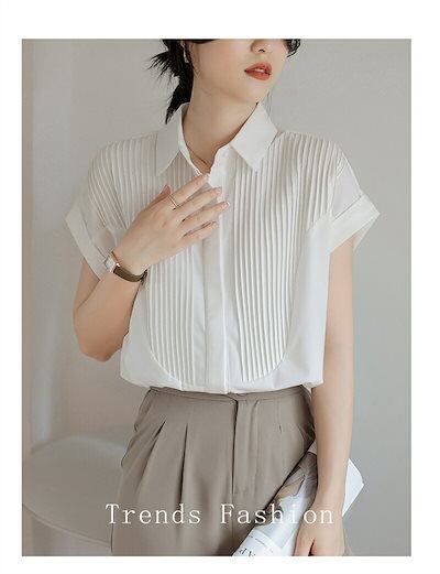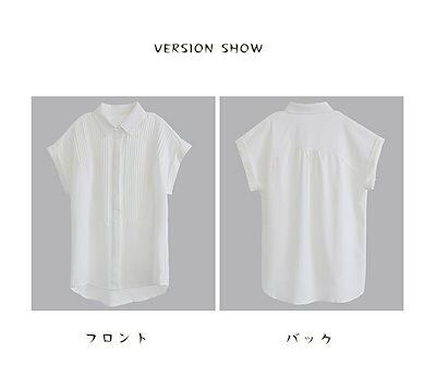 半袖 シャツ ブラウス レディース シャツブラウス 半袖ブラウス 半袖シャツ トップス 半袖トップス ピンタック タック チュニック 夏 折り襟 ゆったり 前開き ボタン留め 白シャツ ホワイト き