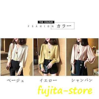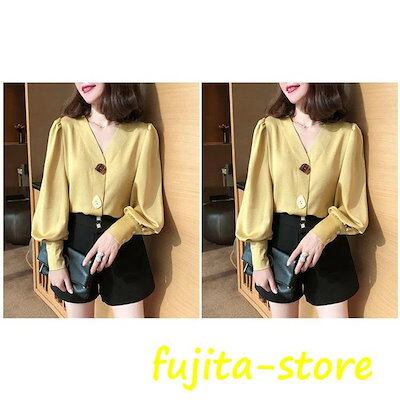 【人気品超目玉】ブラウスレディースシャツブラウス春秋ぽわん袖レトロバルーンスリーブVネッククラシックフランス風通勤ボタン付き不規則ボタン長袖おしゃれ