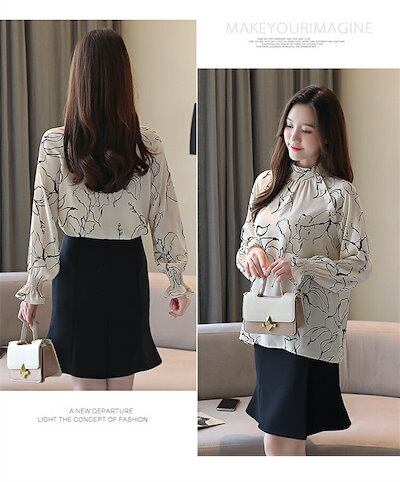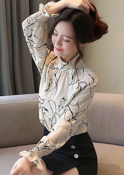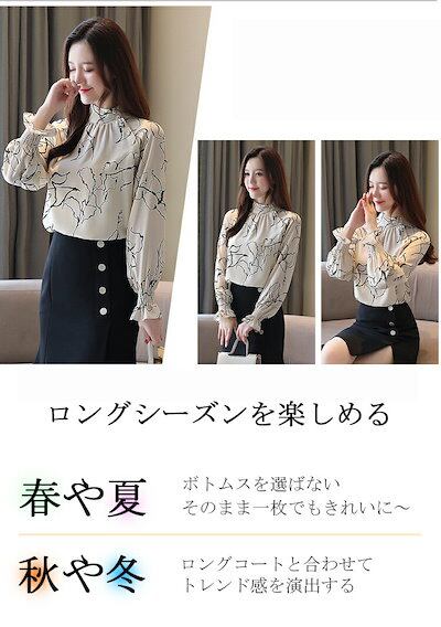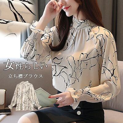 斜めボタン ブラウス 立ち襟 フリル 長袖 シャツブラウス レディース オフィス フォーマルブラウス フォーマル シャツ 花柄 バンドカラー 春 秋 長袖ブラウス シフォン お呼ばれ OL 仕事 学校