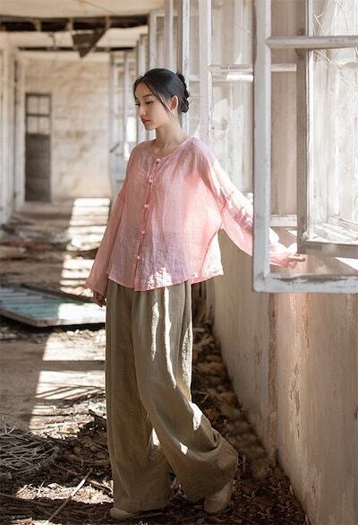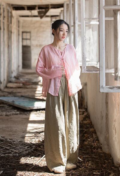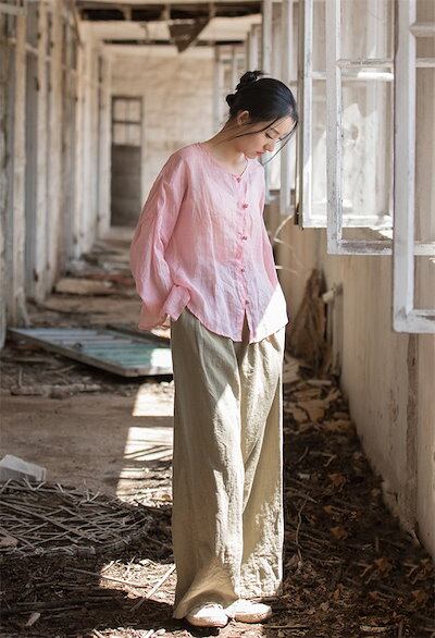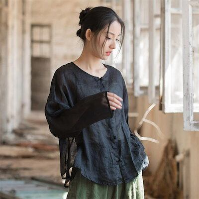 リネンカーディガン リネンカーディガン シャツブラウス レディース チャイナボタン 大きいサイズ 体型カバー トップス レディーストップス 春夏 前開き シンプル フェミニン 通勤 無地 30代 4