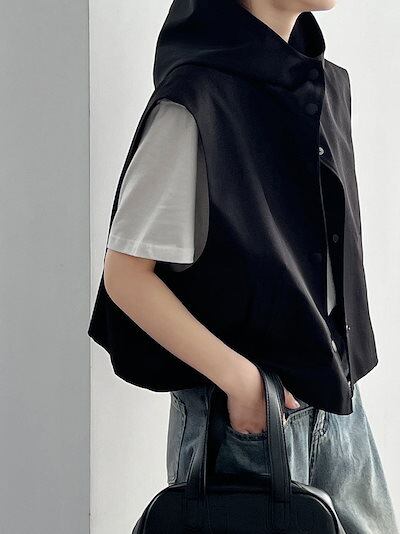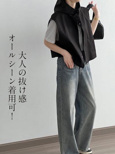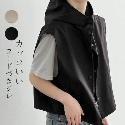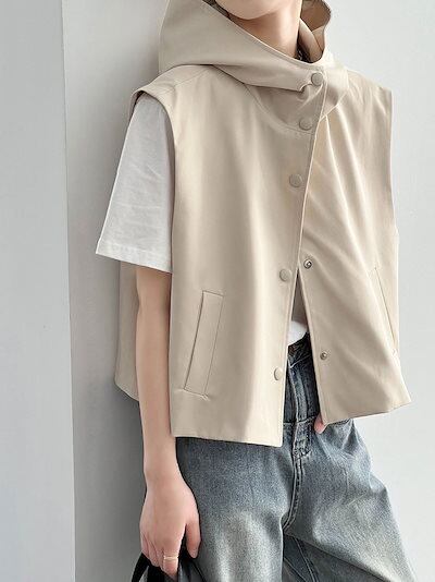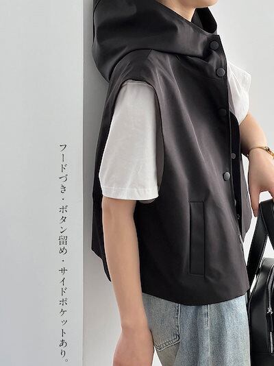 【2点購入25O円OFF】トップス ベスト レディース ジレ ノースリーブパーカー オーバーシルエット パーカー ゆったり 袖なし フードづき きれいめ 重ね着 羽織り ボタン ノースリーブ 前開き