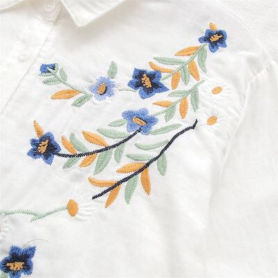 シャツ 刺繍 綿シャツ ホワイトシャツ レディース 長袖 ガーゼ 春 白シャツ コットン 通勤シャツ ブラウス トップス シャツブラウス 無地 ボタン留め 花柄 お洒落 ガーゼシャツ 長そで カットソ