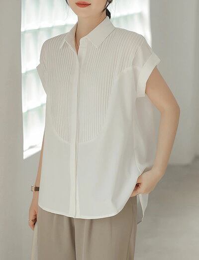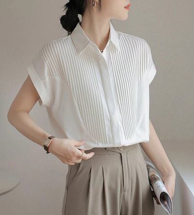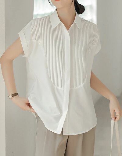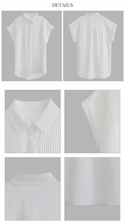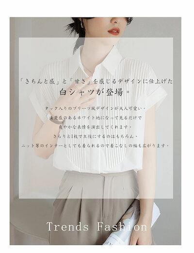 半袖 シャツ ブラウス レディース シャツブラウス 半袖ブラウス 半袖シャツ トップス 半袖トップス ピンタック タック チュニック 夏 折り襟 ゆったり 前開き ボタン留め 白シャツ ホワイト きれ