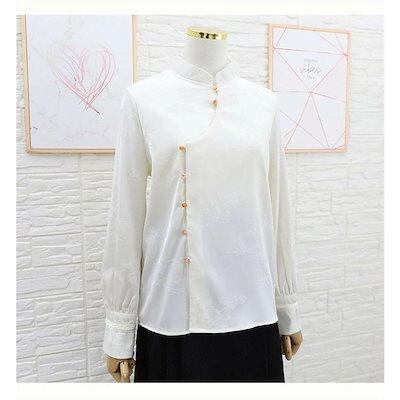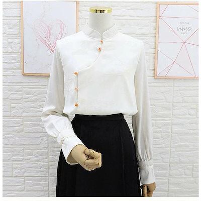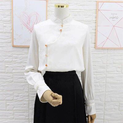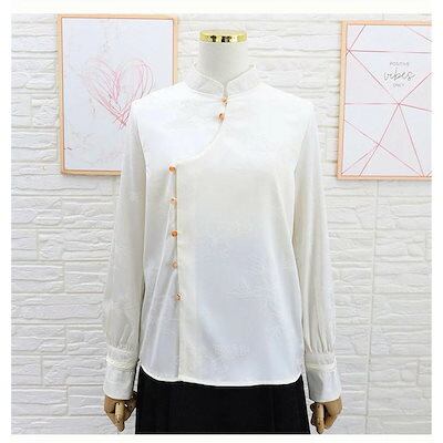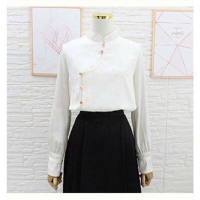 秋の新作 タイムセール シャツ レディース トップス シャツブラウス 長袖 長そで スタンドカラー 羽織 羽織り チャイナボタン ゆったり 体型カバー おしゃれ 秋 2枚購入で200円OFF
