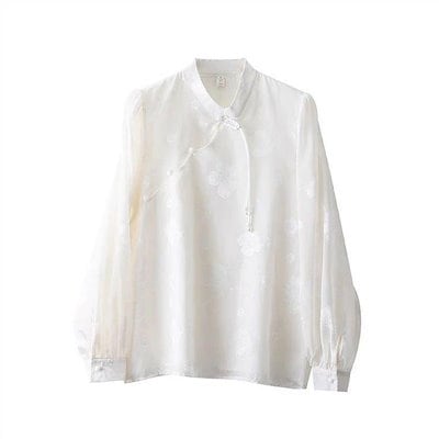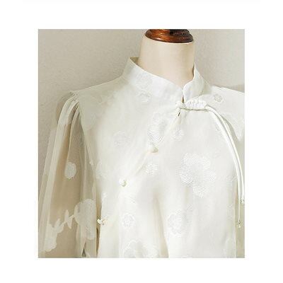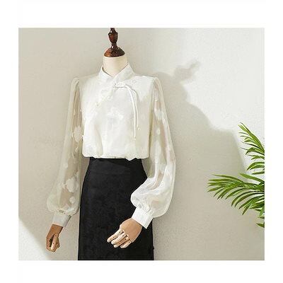 秋の新作 タイムセール ブラウス レディース トップス シャツ シャツブラウス チャイナボタン 立ち襟 長袖 長そで ボリューム袖 体型カバー ゆったり 春 チャイナボタンブラウス 2枚購入で200円