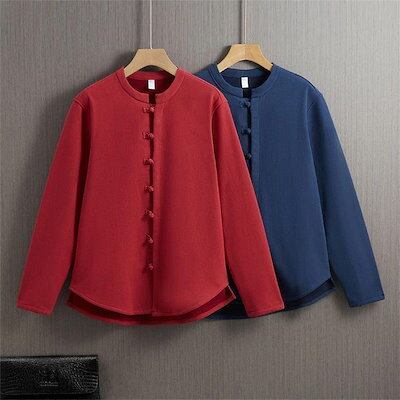 秋の新作 タイムセール ブラウス 裏起毛 レディース メンズ ユニセックス トップス シャツ チャイナボタン カーディガン カーデ 長袖 長そで 丸首 クルーネック 羽織り 防寒 ゆったり 2枚購入で