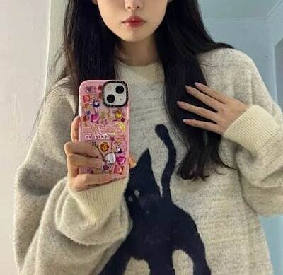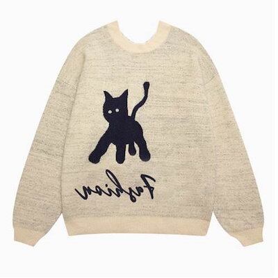 クーポン有ニット セーター トップス レディース プルオーバー 個性的 秋 冬 普通丈トップス 長袖 クルーネック 丸首 襟なし ベージュ 秋カラー ねこ柄 S M L XL LL 普段使い 日常使い