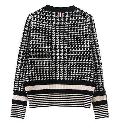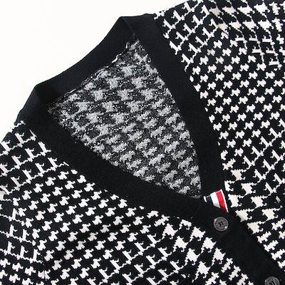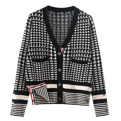 クーポン有チェック柄 トップス ニット カーディガン レディース 秋冬 春 きれいめ 長袖 ショート丈 長袖 Vネック 襟なし ノーカラー スリム 細身 サイドスリット ハイウエスト リブ 前開き 黒