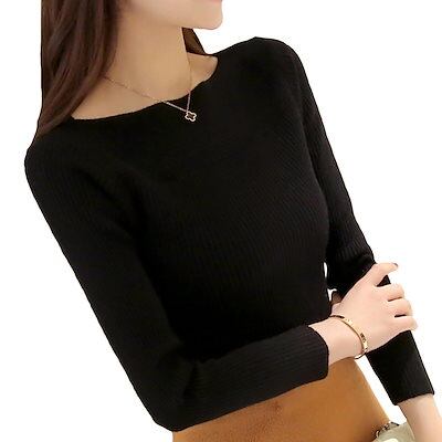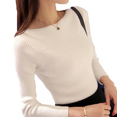 リブニット セーター レディース トップス カットソー 一字襟 インナー レディース 秋冬 長袖 オフィスカジュアル 柔らかい 高伸 薄手 無地 オフィスカジュアル シンプル レディース