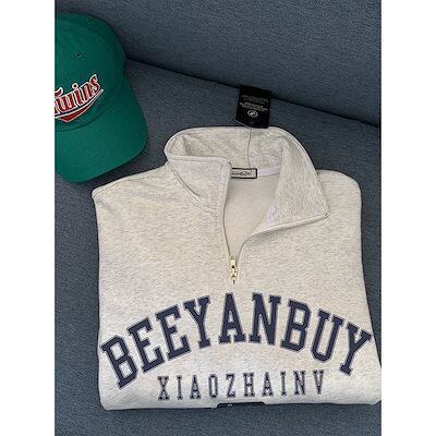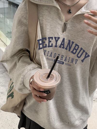 グレーハーフジップスタンドカラーセーターレディース秋新作オリジナルデザインセンスニッチPOLO襟トップス