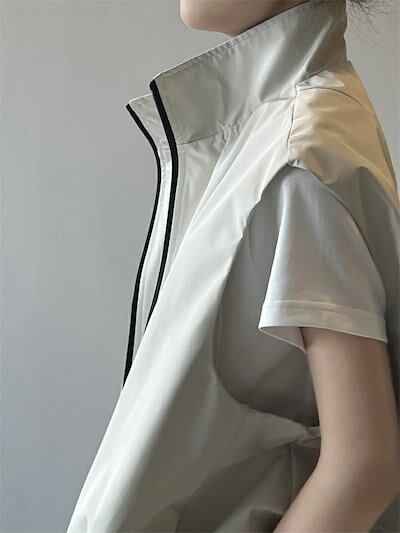 ベスト 秋 ノースリーブ ジャケット レディース 立ち襟 トップス シップアップベスト 大きいサイズ ノースリーブ 羽織る アウター カーディガン シンプル レイヤード 重ね着 お洒落 体型
