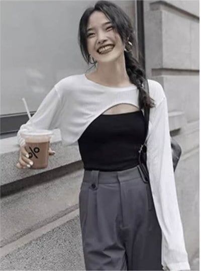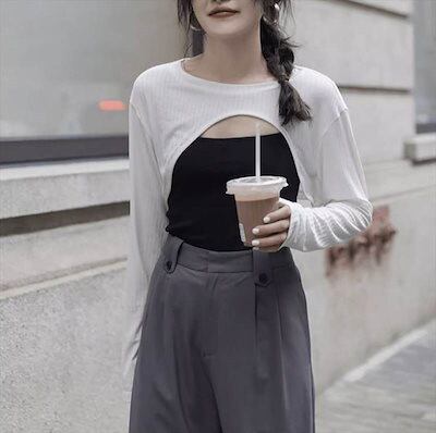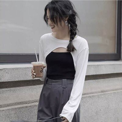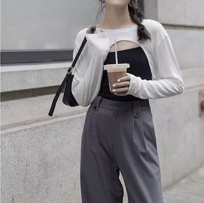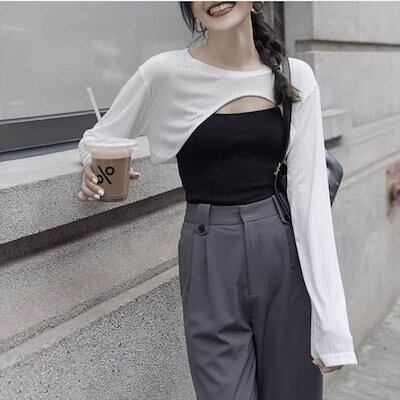 クーポン有ボートネック ミニ トップス レディース カットソー 白トップス 個性的 春 夏 秋 長袖 二の腕カバー 萌袖 襟なし スリム タイト 細身 肌みせ カラバリあり ブラック ホワイト 無地
