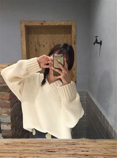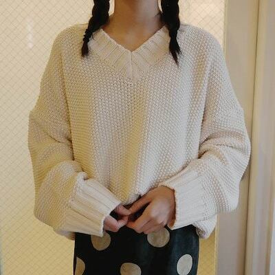 クーポン有Vネック セーター トップス レディース プルオーバー 秋 冬 裾イン 長袖 ボリューム袖 襟なし 鎖骨きれい 伸縮性 カラバリあり ホワイト キャメル レッド 秋カラー 春カラー 無地 サ
