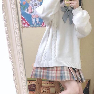クーポン有Vネック セータートップス レディース 個性的 春 秋 冬 お尻カバー 裾ワイド 長袖 萌袖 ボリューム袖 襟なし BIGシルエット 伸縮性 カラバリあり グレー ホワイト ベージュ ネイビ