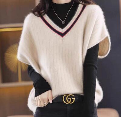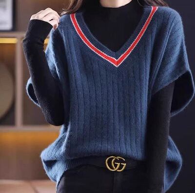 クーポン有半袖 ニット セーター トップス レディース 個性的 秋 冬 普通丈トップス 裾イン Vネック 襟なし カラバリあり グレー ベージュ アプリコット ブルー 無地 フリーサイズ 厚手 学校