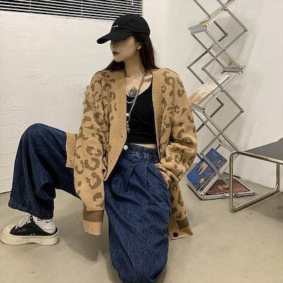 クーポン有トップス レディース ニット カーディガン 秋 冬 裾長め 長袖 萌袖 ボリューム袖 ラグラン Vネック 襟なし BIGシルエット 前開き レイヤード ボタン カラバリあり グレー 灰色 ブ