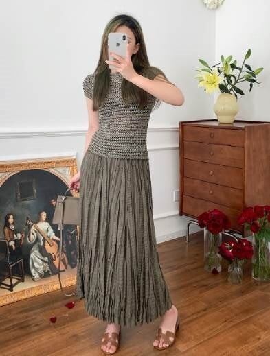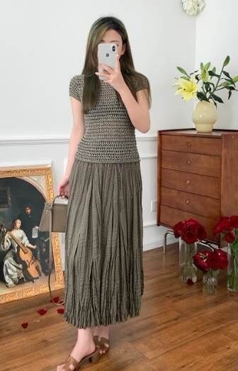 クーポン有トップス レディース ニット セーター プルオーバー 春 夏 ミドル丈 普通丈トップス 半袖 ラウンドネック 襟なし ノーカラー ストレート ふっくら 伸縮性 S M L リゾート 旅行 レ