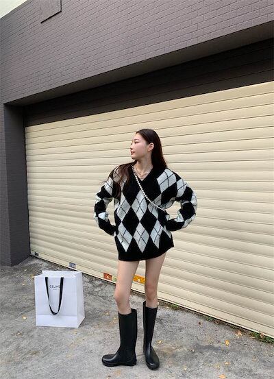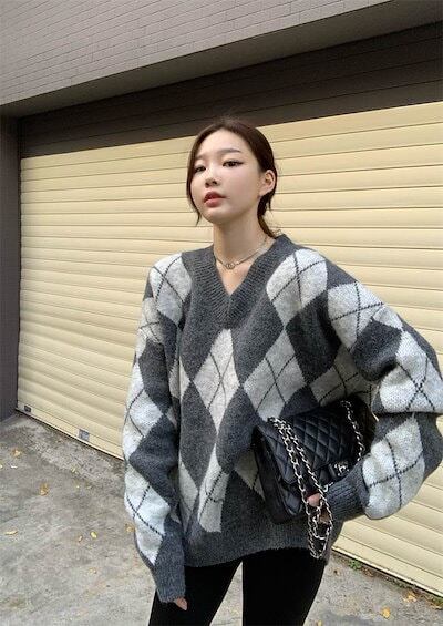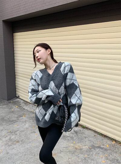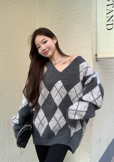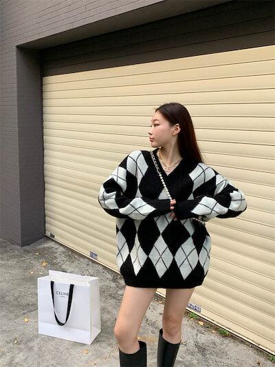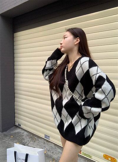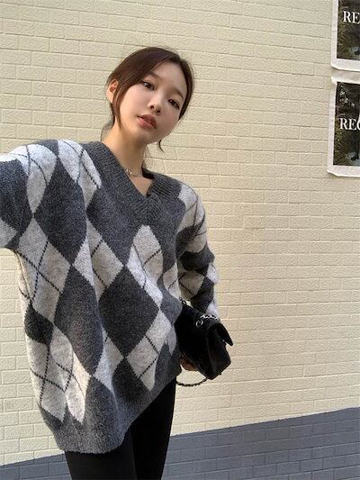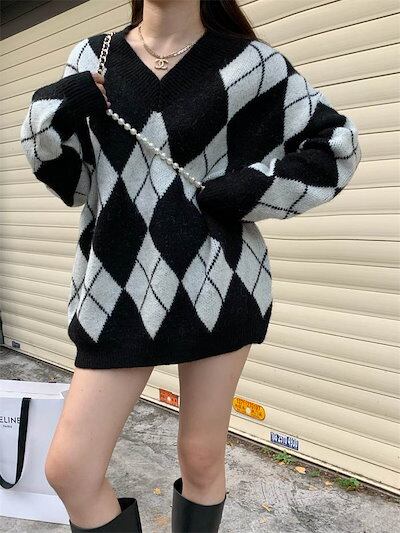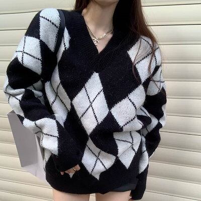 クーポン有Vネック ニット トップス レディース セーター 個性的 秋 冬 お尻カバー 裾ワイド 長袖 萌袖 ボリューム袖 襟なし 鎖骨きれい BIGシルエット カラバリあり ブラック グレー 灰色